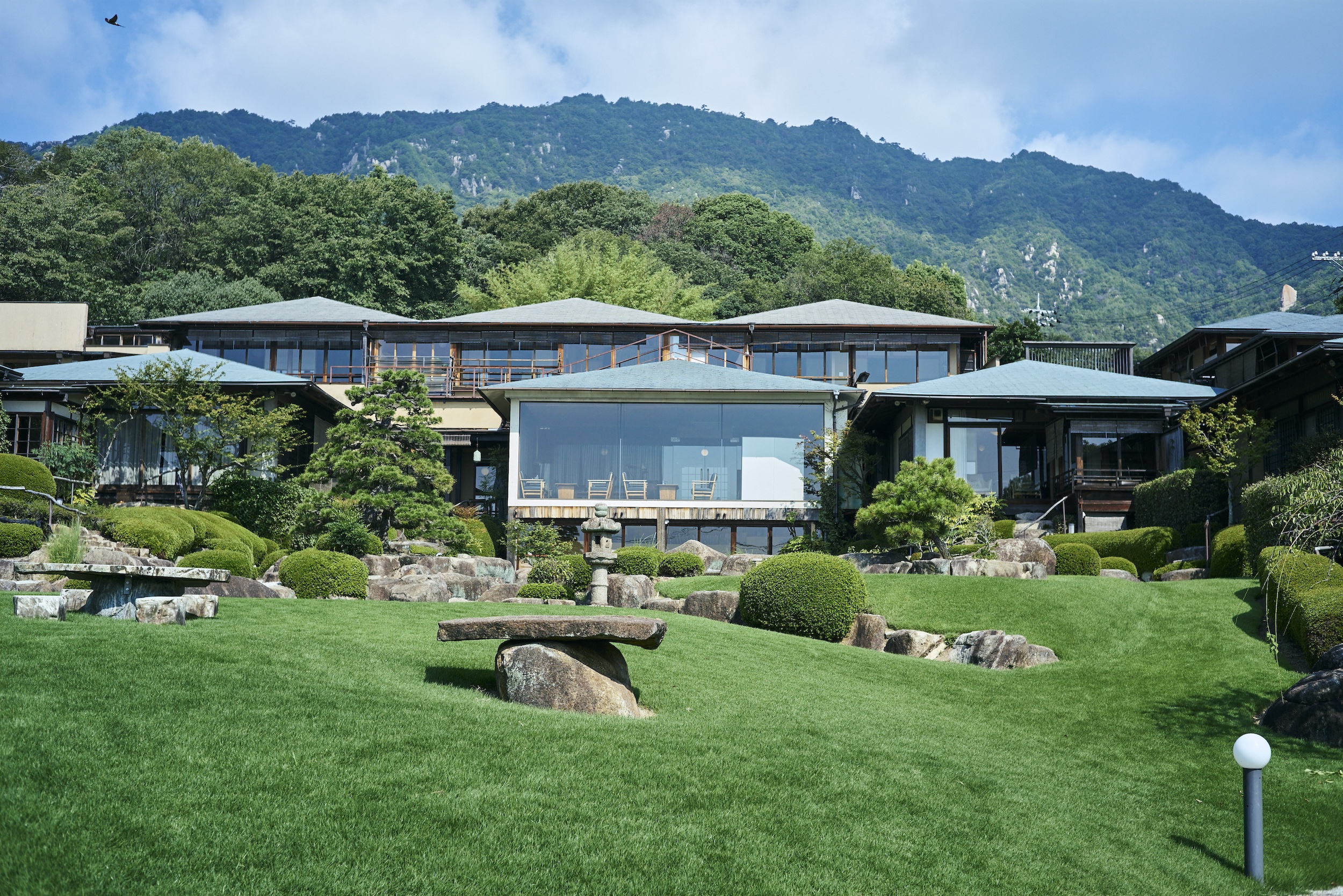 Perched in Miyahama Onsen with views of the Seto Inland Sea, Sekitei is a refined hideaway where traditional sukiya-style architecture harmonizes with a landscaped Japanese strolling garden. Guests can unwind in tranquil detached rooms overlooking the garden, savoring moments of peace and privacy. The inn is renowned for its kaiseki cuisine prepared with seasonal ingredients and fresh seafood from the Seto Inland Sea—particularly local specialties such as oysters and conger eel. An open-air bath with views of the changing seasons adds to its appeal.