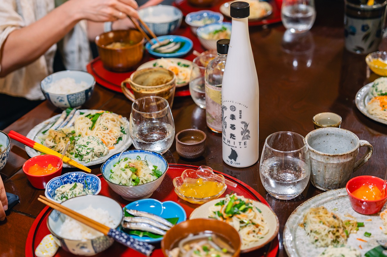 The 5th-generation head of Yanbaru Distillery, who balances both sake-making and raising four children, will warmly welcome you like family. Once the dishes are ready, you will gather around the table and share a lively meal together.